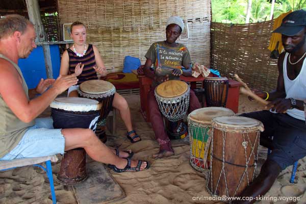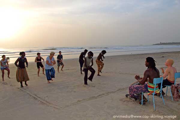 Sur place vous aurez accès à de nombreuses activités aussi bien sportives que culturelles, randonnées découverte des villages Diola, baignade, footing, gymnastique sur la plage, pêche en surfcasting ou dans les bolongs, soirées spectacles en tous genres, cinéma, discothèques, restaurants, stage et cours de percussions et de danse africaine...